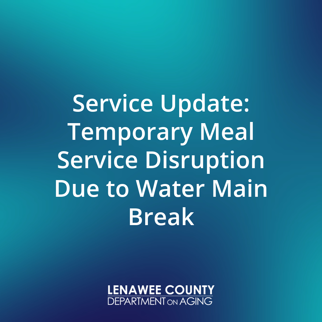 The Lenawee Department on Aging would like to inform residents of a temporary disruption to meal services due to a water main break in Madison Township, which has impacted operations at our centralized kitchen.